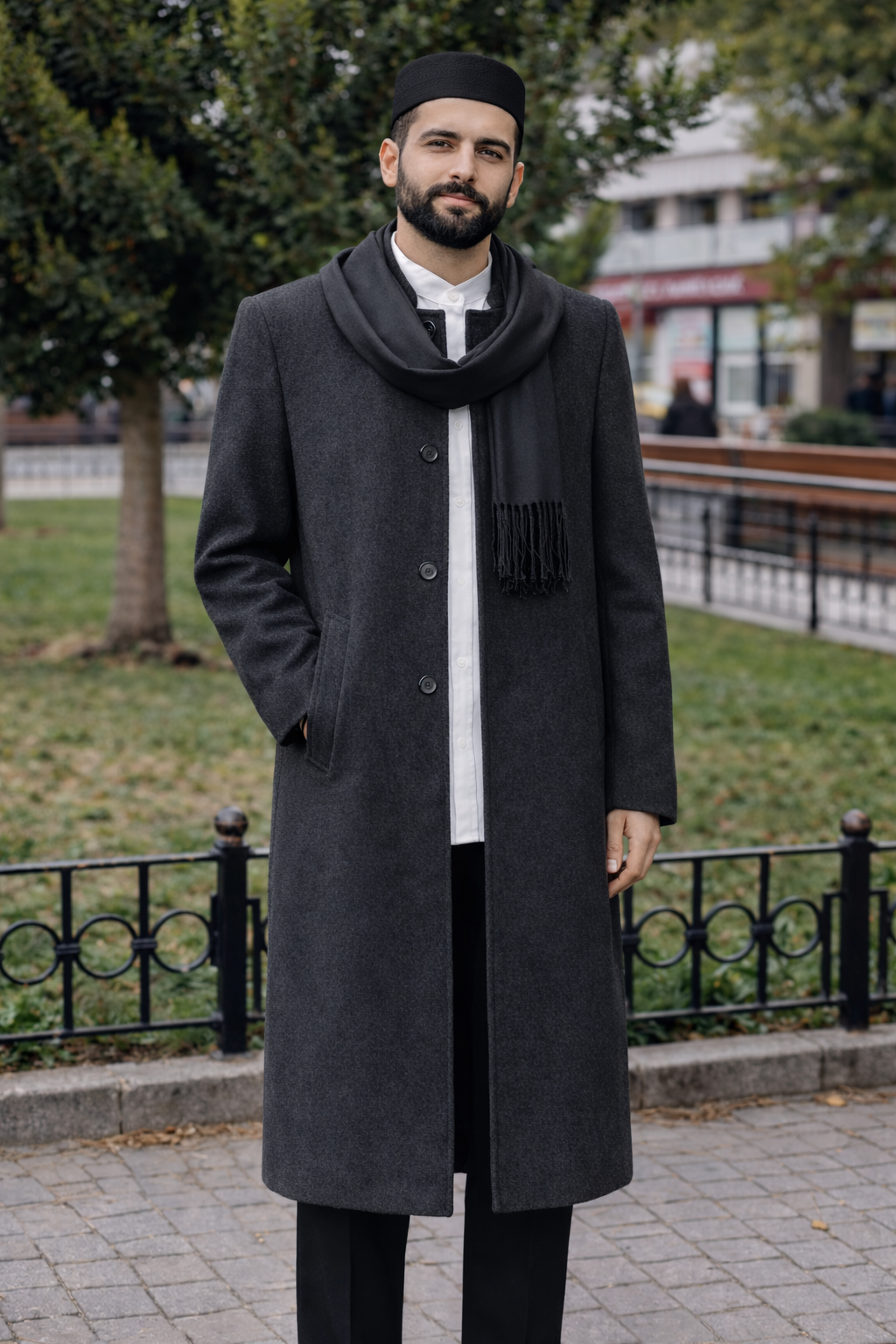 Bu ceket kış ve ilkbahar için idealdir. 2 adet cebi ve 4 adet gizli düğmesi bulunmaktadır. İçi astarlı, sıcak tutan, kalın ve son derece yumuşak bir yünlü kumaştır.